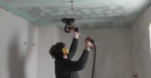 Rigips Schleifen mit einem Langhalsschleifer mit Absaugung